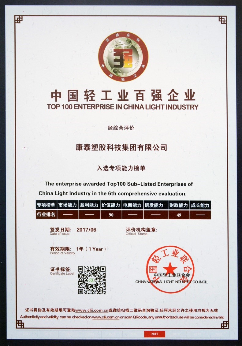 中國輕工業(yè)百強企業(yè)頒獎盛典是中國輕工業(yè)聯(lián)合會重要的年度活動,得到國家發(fā)改委、國資委、工信部、商務部、國家統(tǒng)計局等相關(guān)部委支持,具有極高權(quán)威性和廣泛影響力。本屆論壇以“推動兩化融合、建設(shè)智慧輕工”為主題,旨在提高輕工行業(yè)兩化融合水平、引領(lǐng)打造輕工業(yè)“智慧制造、智慧產(chǎn)品、智慧運營、智慧生活”。 康泰集團再次獲得殊榮,充分彰顯康泰集團的雄厚實力和行業(yè)領(lǐng)先地位。