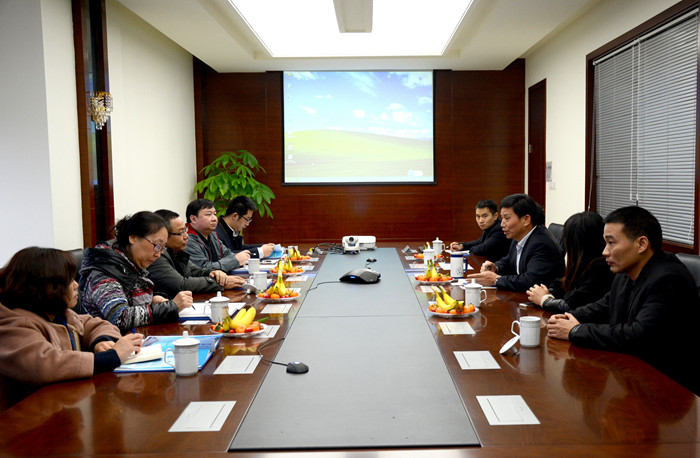 圖示:中石化系統(tǒng)領(lǐng)導(dǎo)一行與集團(tuán)高層在302會議室座談現(xiàn)場