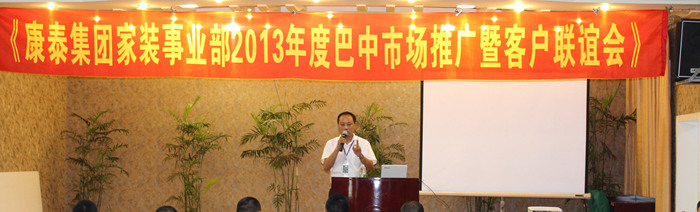 ??? 2013年8月16日,巴中總代理東方家園配送中心茍必有帶領巴中零售商一行50余人來到康泰集團參觀,并在琴鶴苑參加了“康泰集團家裝事業(yè)部2013年度巴中市場推廣暨客戶聯(lián)誼會”。
