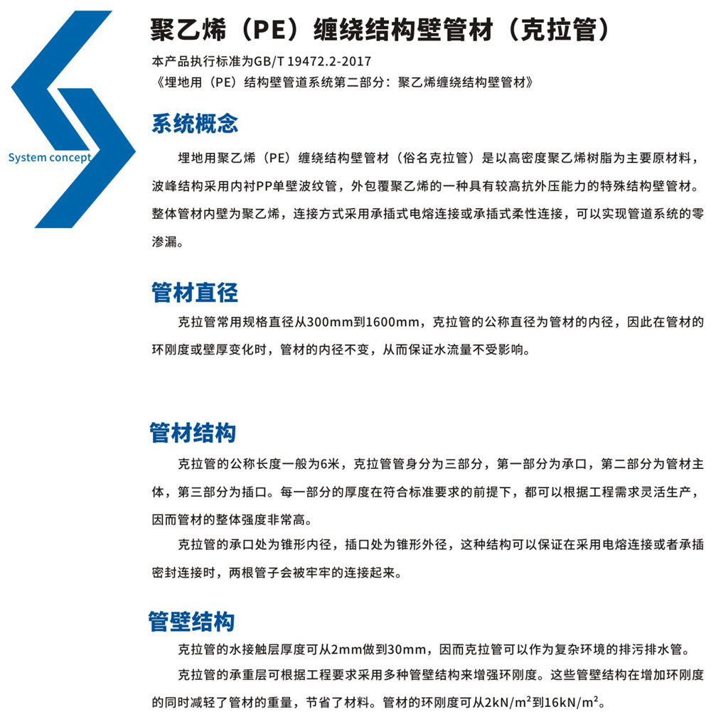 聚乙烯(PE)纏繞結(jié)構(gòu)壁管(克拉管):
